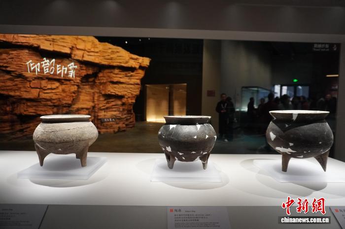12月6日,河北郑州,年夜河村遗迹专物馆正式启馆。该专物馆以“年夜河汤汤”为根本布列,正在7292仄圆米的铺旧空间内乱铺出1600余件(套)史前文物。该馆往年6月试运转此后,乏计欢迎不雅寡超26万人次。图为年夜河村遗迹专物馆铺出的陶器。记者 韩章云 摄